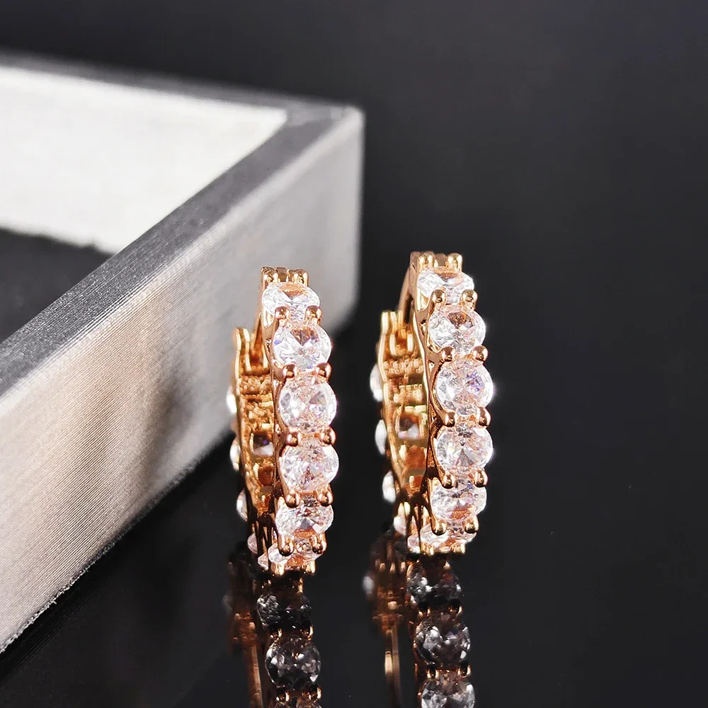 Crystal Huggie Hoop Earrings – Gold, Rose Gold, Black, Hypoallergenic