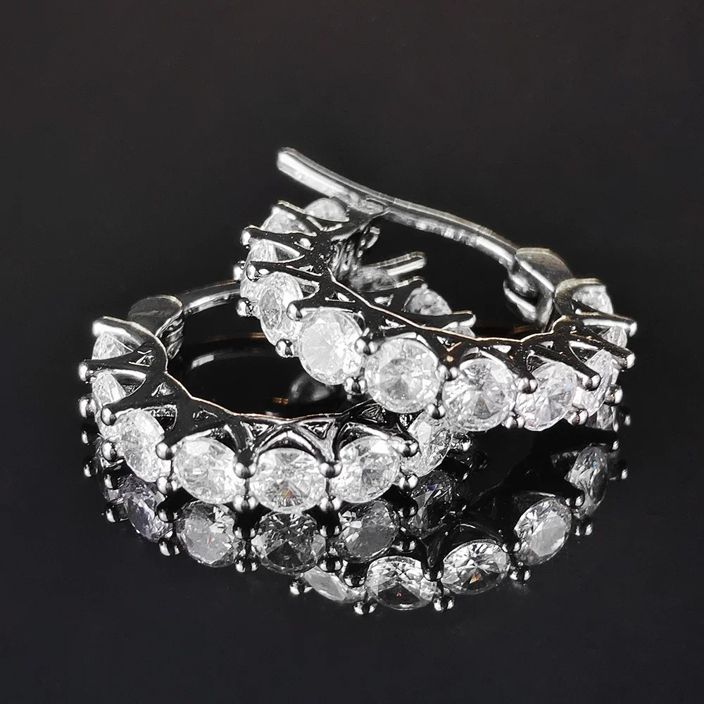 ✅ 100% hypoallergenic – perfect for sensitive ears ✅ 14 dazzling CZ stones in secure claw settings ✅ Hinged snap closure – stays on, no pinching ✅ Lightweight alloy core (under 6g per pair)